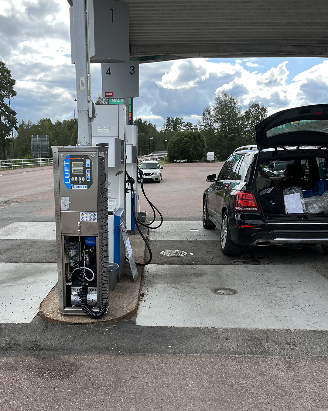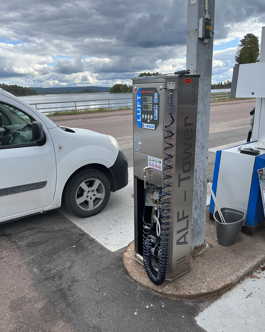 Under vår resa från Stockholm till Tromsö och åter, hade vi nöjet att titta på många olika bensinstationer och deras luft- och vattenskåp i Finland, Norge och Sverige. Det var väl lite sisådär med ordning och utrustning. Men den serviceplats vi tyckte såg bäst ut var Circle K i Sveg. Där kunde man fylla luft i bilar, motorcyklar, off-road maskiner och cyklar, både med bärbara ALF lufttrycksmätare och med den fastmonterade digitala ALF Tronic.